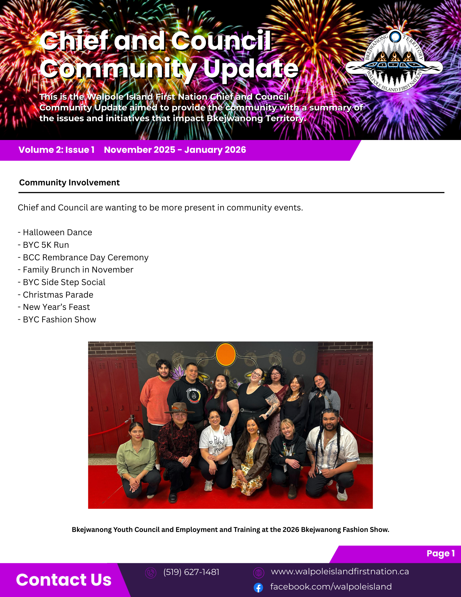 This is the Walpole Island First Nation Chief and Council Community Update (November 2025 - January 2026) aimed to provide the community with a summary of the issues and initiatives that impact Bkejwanong Territory.